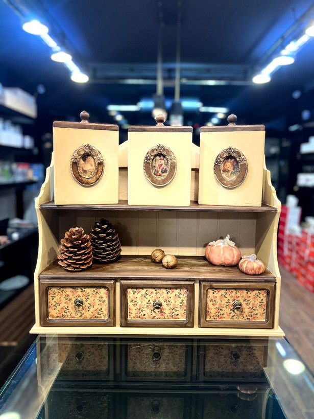 یک محصول شیک و کاربردی برای آشپزخانهی شما که هم ظاهر خانه را لوکس و کلاسیک میکند و هم محل منظم و دسترسپذیر برای وسایل آشپزخانه است. این کافی بار دستساز از جنس چوب مرغوب تولید سوییت هوم است و با پتینه کاری استادانه، هر جزئیاتش حس هنر و ظرافت را منتقل میکند.