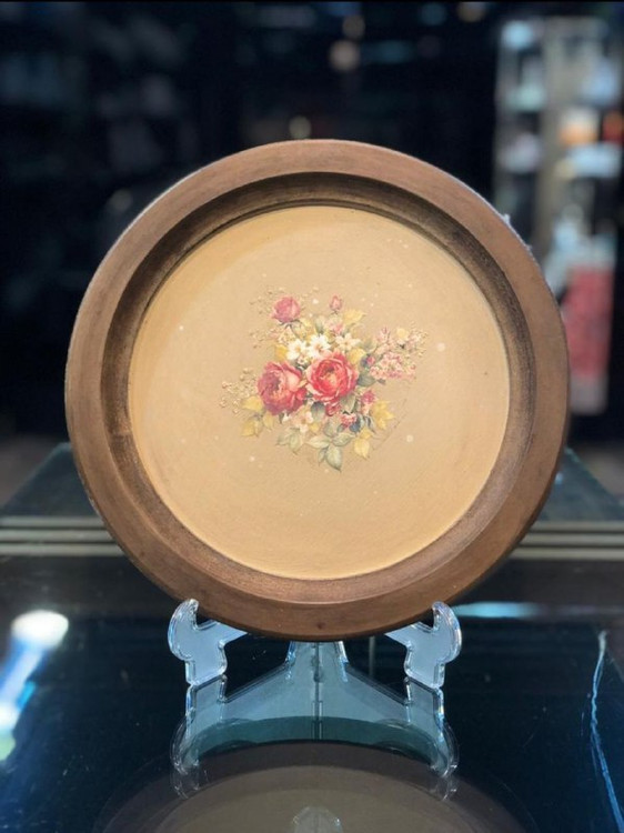 سینی گرد دکوراتیو پتینه کاری شده با حاشیه ساده طرح گلدار