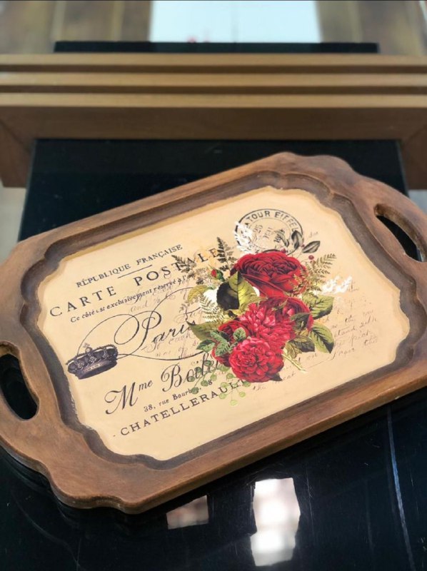 این سینی با ترکیب رنگهای کلاسیک و طراحی هنری فرانسوی، حس شیک بودن و ظرافت را به فضای شما اضافه میکند و میز شما را به یک نقطه کانونی جذاب تبدیل میکند.