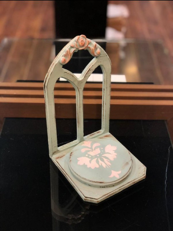 یک محصول شیک و دکوراتیو که میتواند روی میز یا دیوار نصب شود و فضای خانه شما را با رنگی زنده و جذاب پر کند. طراحی ساده اما با جزئیات پتینه کاری ظریف و طرح سفید زیبا، حس آرامش و لطافت را به فضا میآورد.