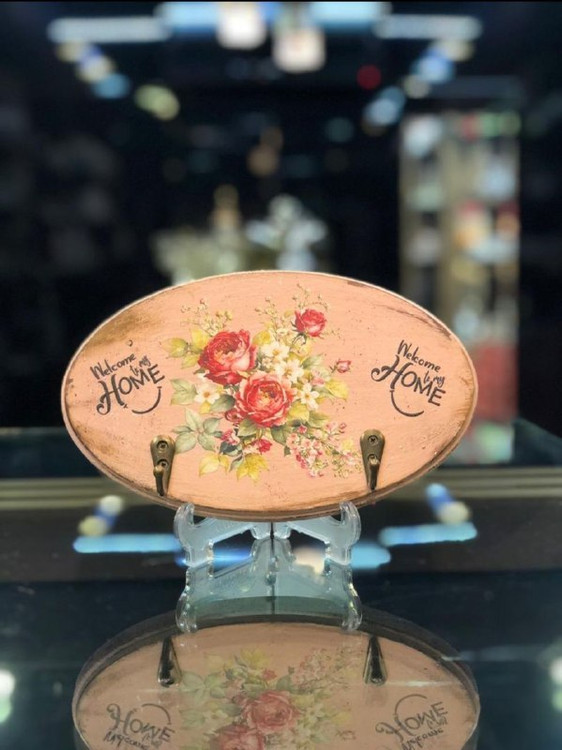 یک محصول شیک و کاربردی که هم نظمدهنده کلیدها است و هم به ورودی منزل شما جلوهای دلنشین و گرم میبخشد. طراحی بیضی شکل با گل قرمز در وسط، حس شادی و مهماننوازی را به فضای خانه اضافه میکند.