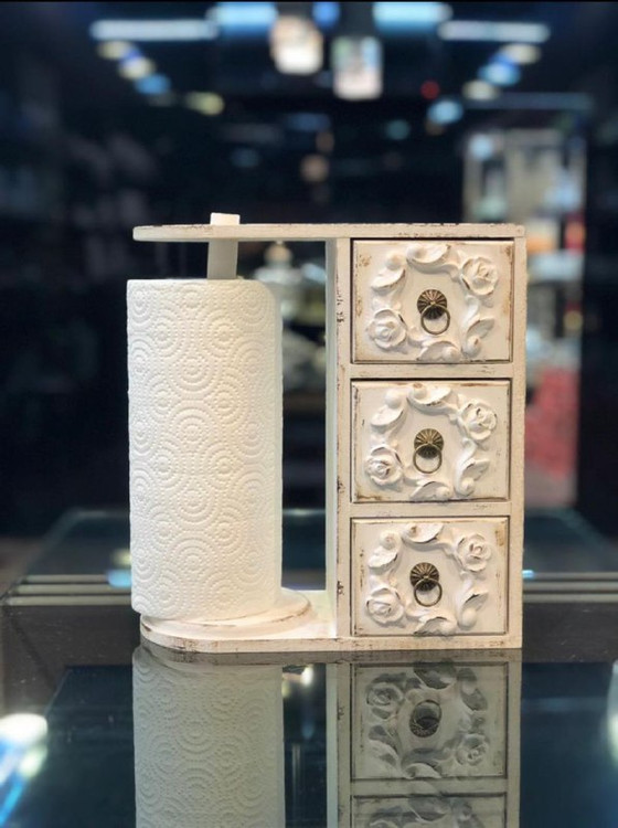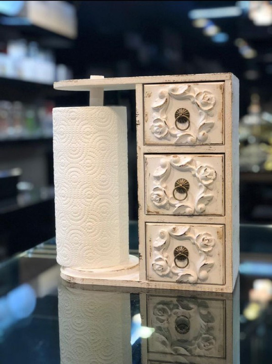 این جای دستمال، با ترکیب کاربرد و طراحی هنری پتینه کاری شده، نه تنها نظم و راحتی را به فضای شما اضافه میکند، بلکه حس زیبایی و شیک بودن را نیز منتقل میکند.