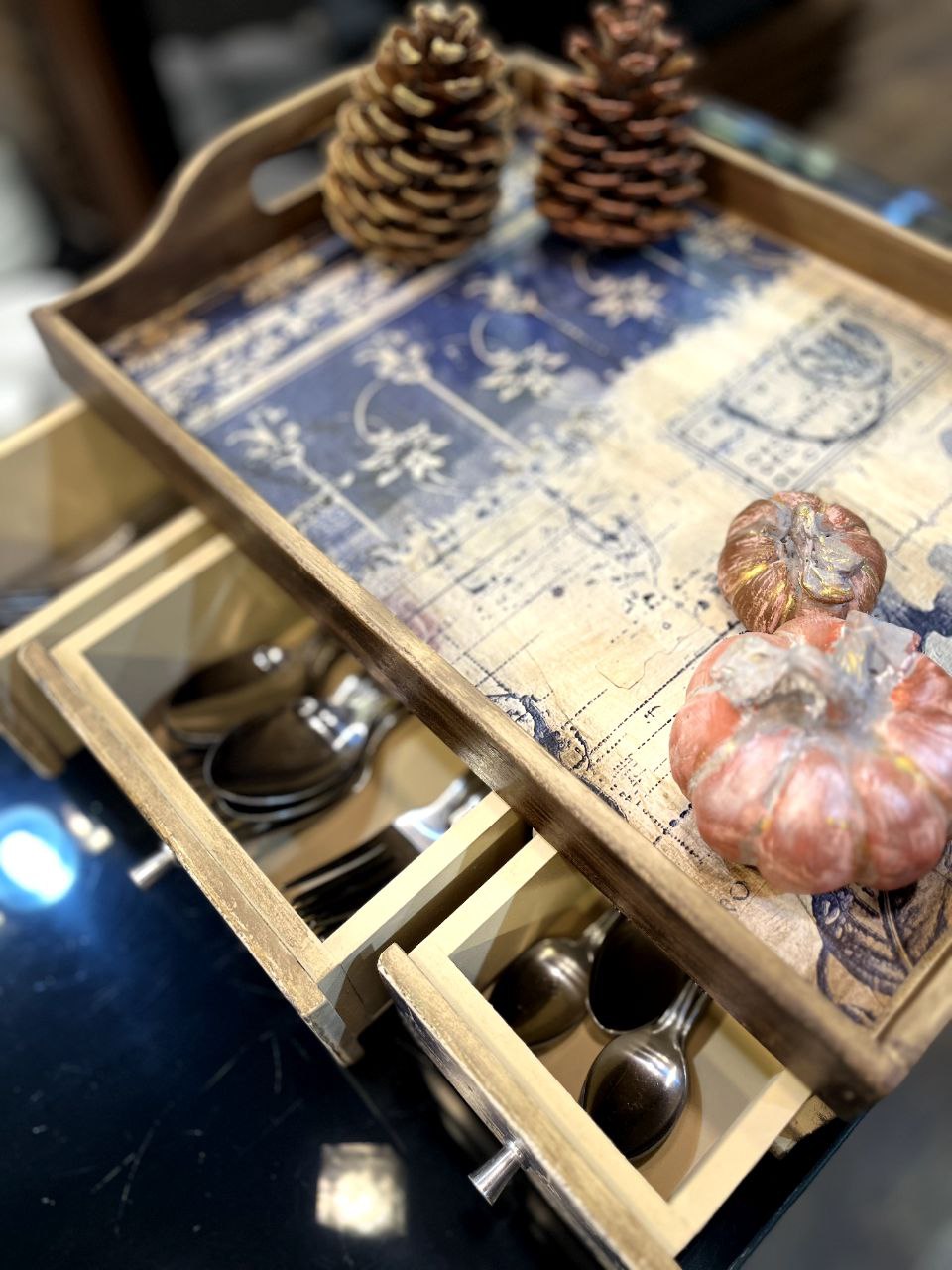 سه کشوی جادار برای قاشق، چنگال یا وسایل ریز آشپزخانه و پذیرایی