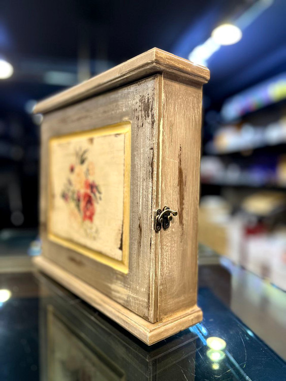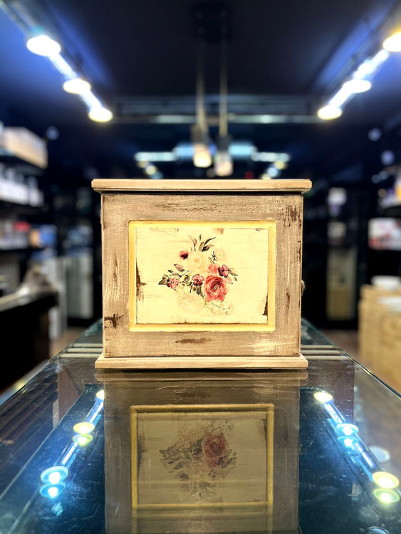 جا فیوزی چوبی طرح گل قرمز، ترکیبی از زیبایی سنتی و هنر دست است که به فضای منزل شما حس گرما و اصالت میبخشد. بدنه محصول از چوب مرغوب ساخته شده و با رنگ قهوهای تیره و درب کرم روشن تزئین شده است. سطح کار با طرح گل قرمز دلنشین و کهنهکاری پتینهای جلوهای خاص و هنری به خود گرفته تا با دکور خانههای کلاسیک و مدرن بهخوبی هماهنگ شود.