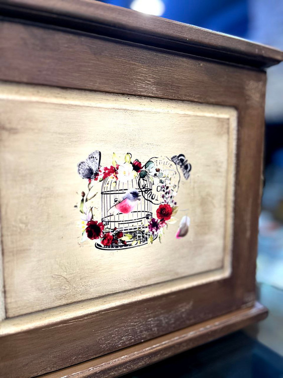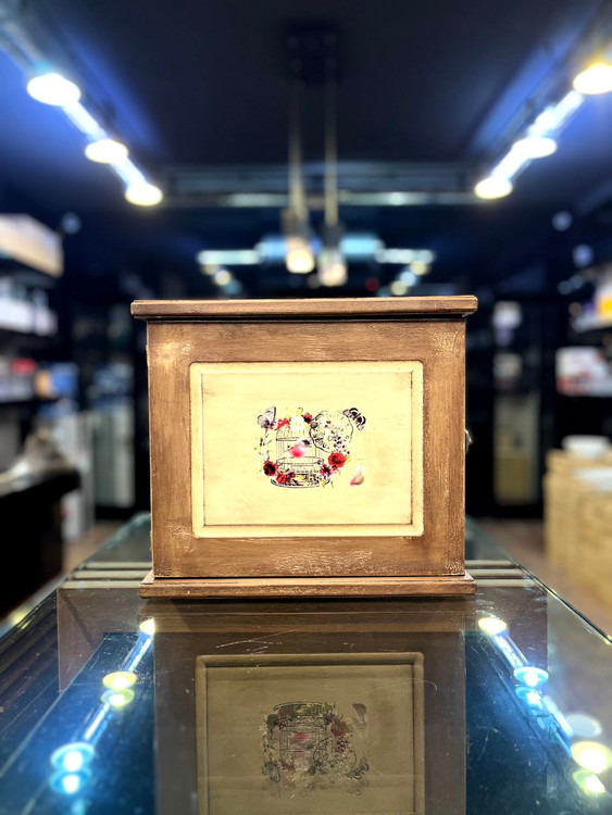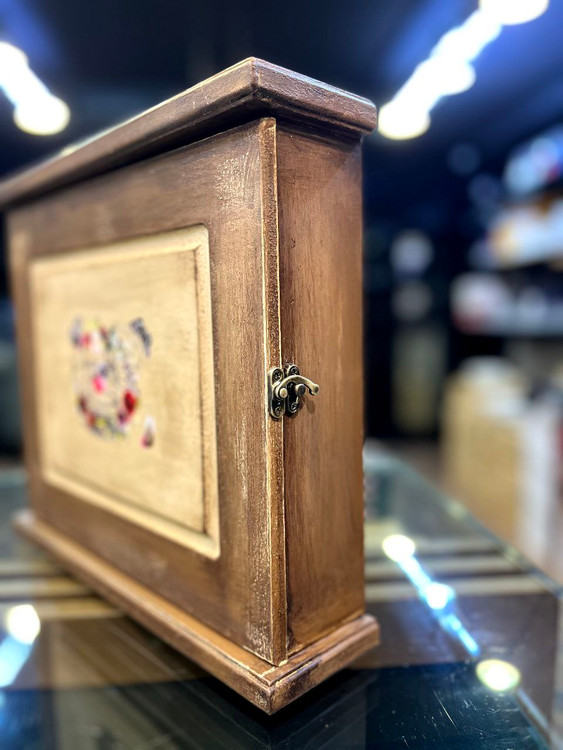 جا فیوزی چوبی طرح گل پرنده، ترکیبی از زیبایی سنتی و هنر دست است که به فضای منزل شما حس گرما و اصالت میبخشد. بدنه محصول از چوب راش ساخته شده و با رنگ قهوهای روشن و درب کرم روشن تزئین شده است. سطح کار با طرح پرنده دلنشین و کهنهکاری پتینهای جلوهای خاص و هنری به خود گرفته تا با دکور خانههای کلاسیک و مدرن بهخوبی هماهنگ شود.