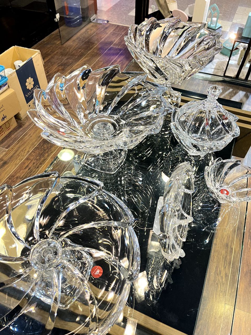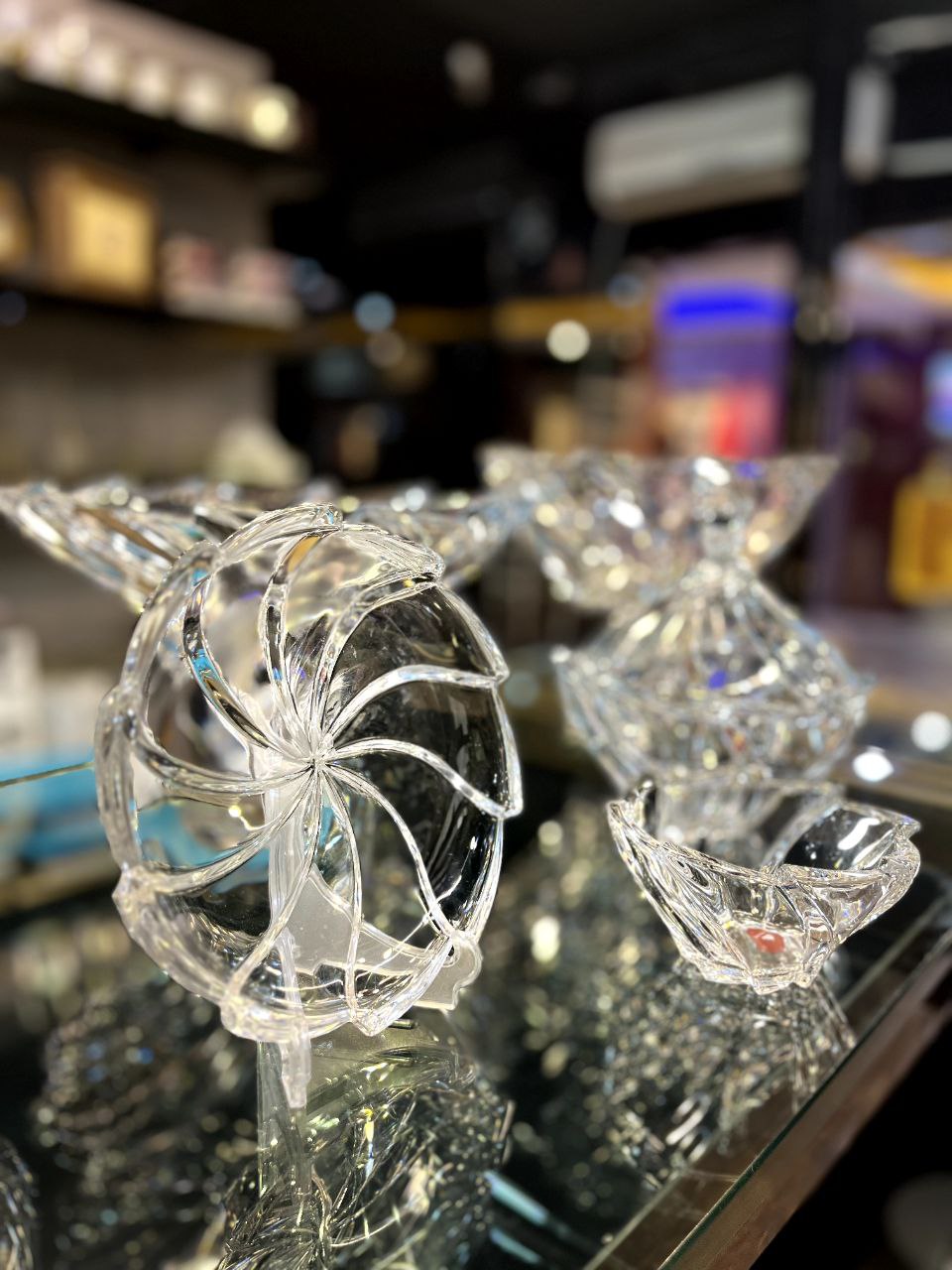 این سرویس زیبا از بلور شفاف و باکیفیت ساخته شده و تراشهای الماسی آن در نور جلوهای درخشان و مجلل ایجاد میکند.
