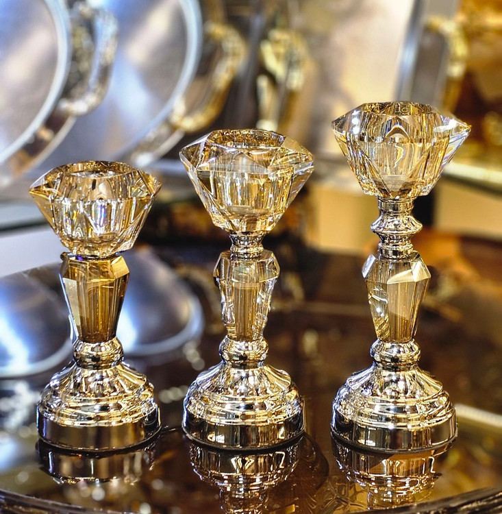 اگر دنبال یک دکوری شیک، مدرن و فوقالعاده جذاب برای تکمیل فضای پذیرایی هستید، شمعدان کریستالی پایه کروم مدل دیاموند همان قطعهای است که در هر نوری میدرخشد. ترکیب کریستال تراشخورده با پایه فلزی کروم براق، جلوهای کاملاً مدرن، تمیز و چشمنواز ایجاد میکند.