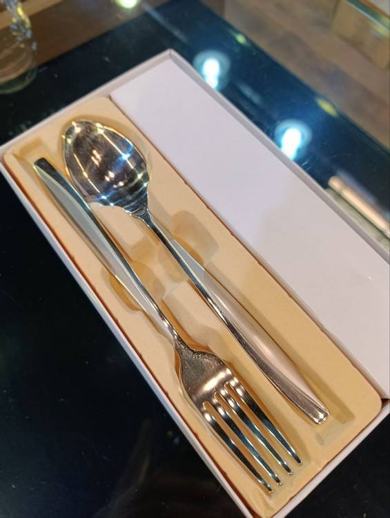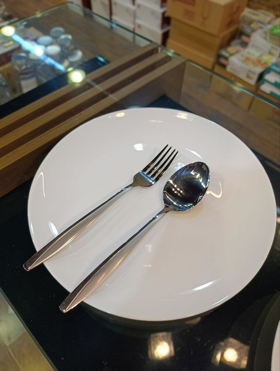 تعداد پارچه: ۱۲ پارچه (۶ عدد قاشق غذاخوری + ۶ عدد چنگال غذاخوری).