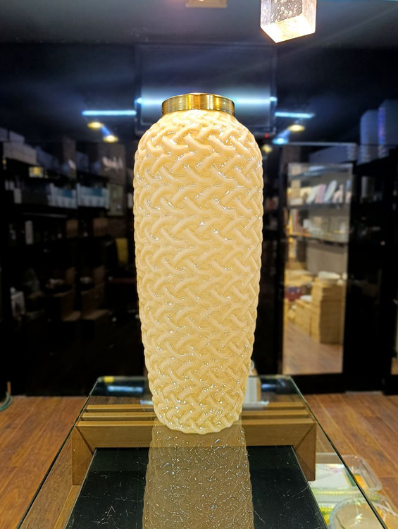 بافت برجسته بدنه در کنار درب طلایی براق، ترکیبی چشمنواز ساخته که حتی بدون گل هم بهتنهایی یک نقطه کانونی در سالن یا دفتر کار شما خواهد بود.