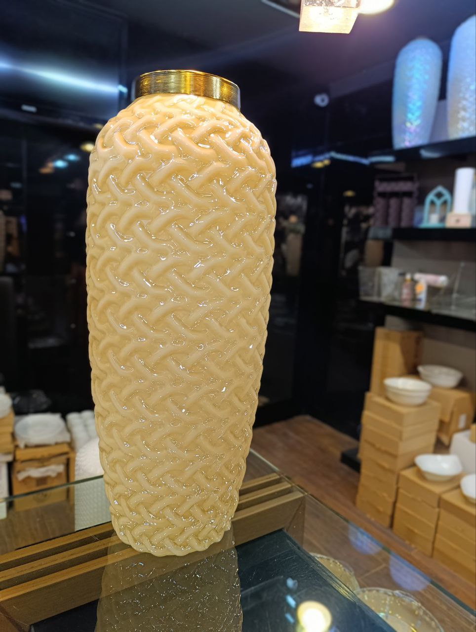 بافت برجسته بدنه در کنار درب طلایی براق، ترکیبی چشمنواز ساخته که حتی بدون گل هم بهتنهایی یک نقطه کانونی در سالن یا دفتر کار شما خواهد بود.