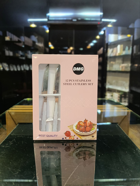 ست کارد میوهخوری DMG با ۱۲ پارچه هدیهای ایدهآل برای تکمیل سفرهآرایی به سبک روشن و مینیمال است. ترکیب دسته کریستالی طرحدار به رنگ سفید شفاف با تیغههای استیل براق، جلوهای پاک و دلنشین به میز شما میبخشد.